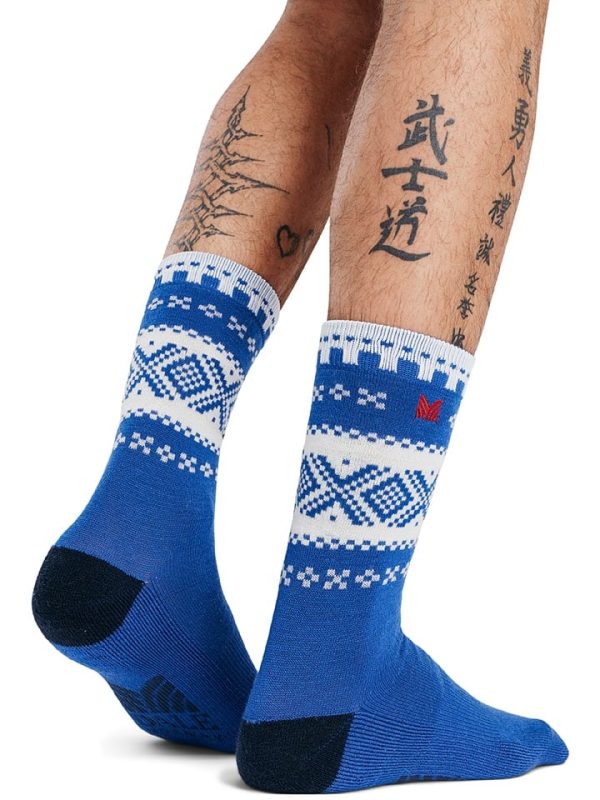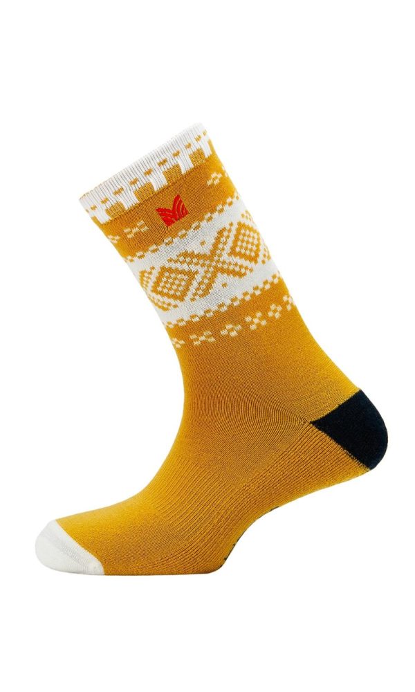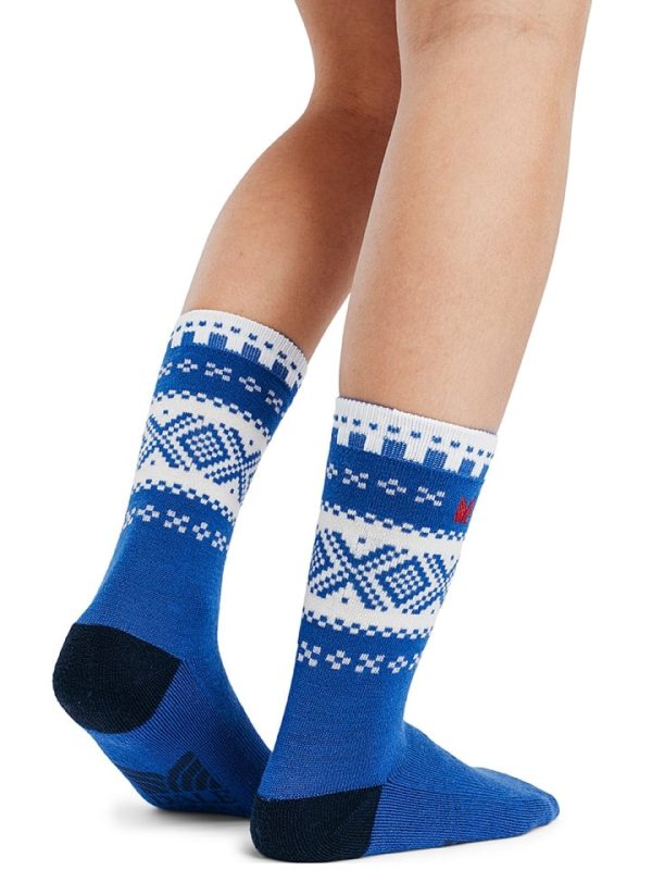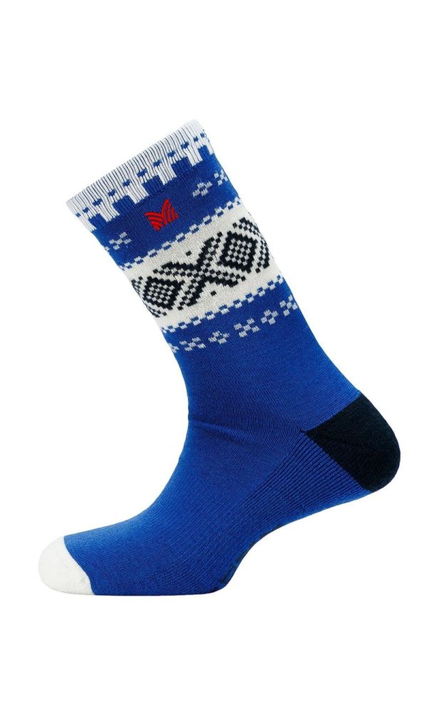 Soft and comfortable socks made from 75% merino wool. The high wool content provides moisture absorption and warmth, while the synthetic materials (15% nylon, 7% polyester, and 3% elastane) add shape retention and durability. The design is inspired by our original 1956 Cortina Olympic sweater.