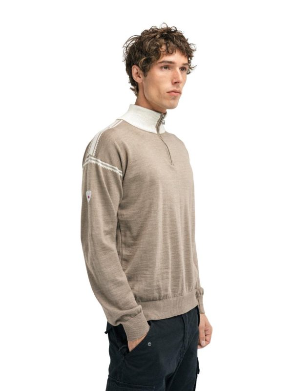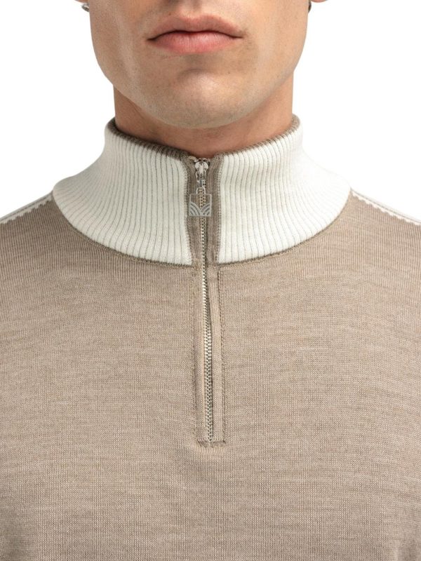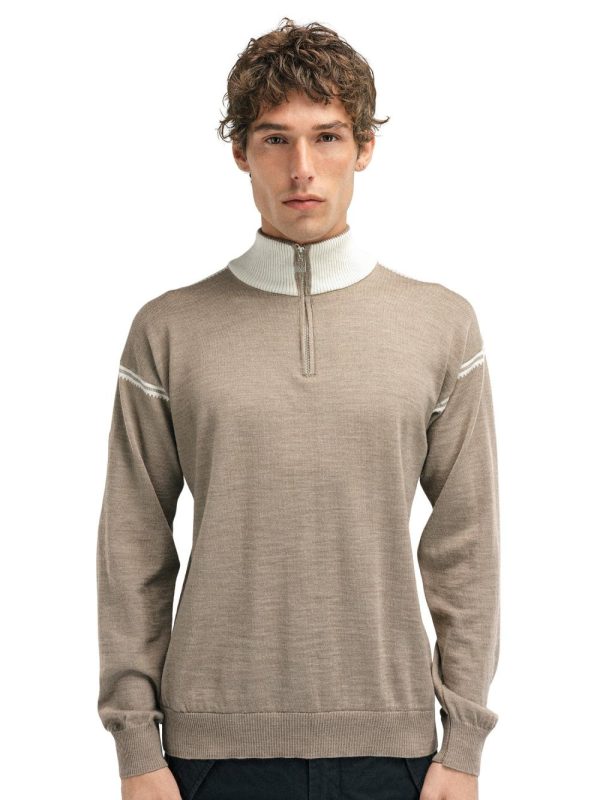 A lightweight, sporty wool sweater with clean lines in 100% soft merino wool. The sweater has a high neck with a zipper and a relaxed fit. Sandvik can be used both as a leisure sweater and for sporting activities. The inside of the neckline is knitted in the same color as the sweater’s main body color.