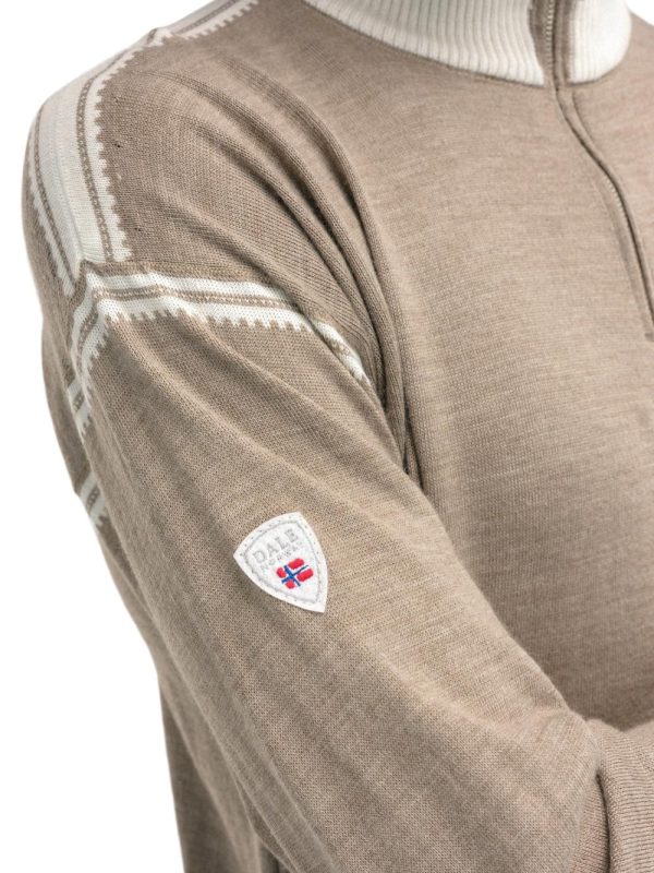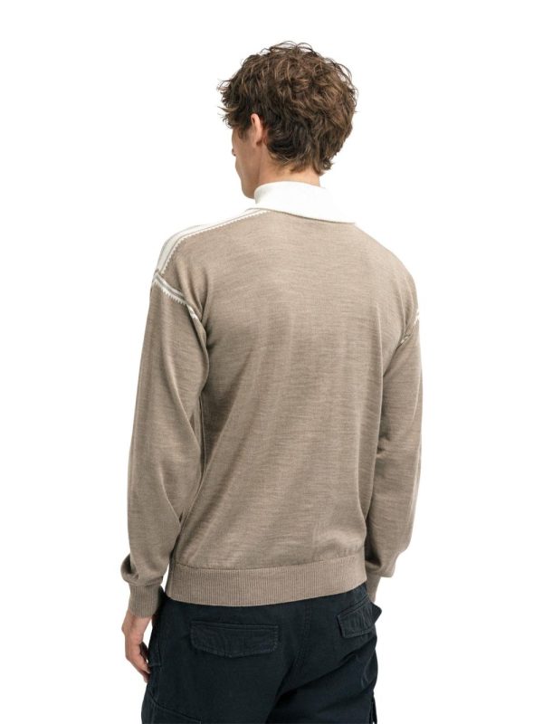 The patterns on the shoulders and sleeves are from our original 1956 Cortina Olympic sweater. The sweater gets its name from Sandviksfjellet, one of the seven mountains surrounding Bergen.