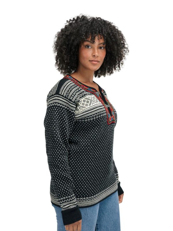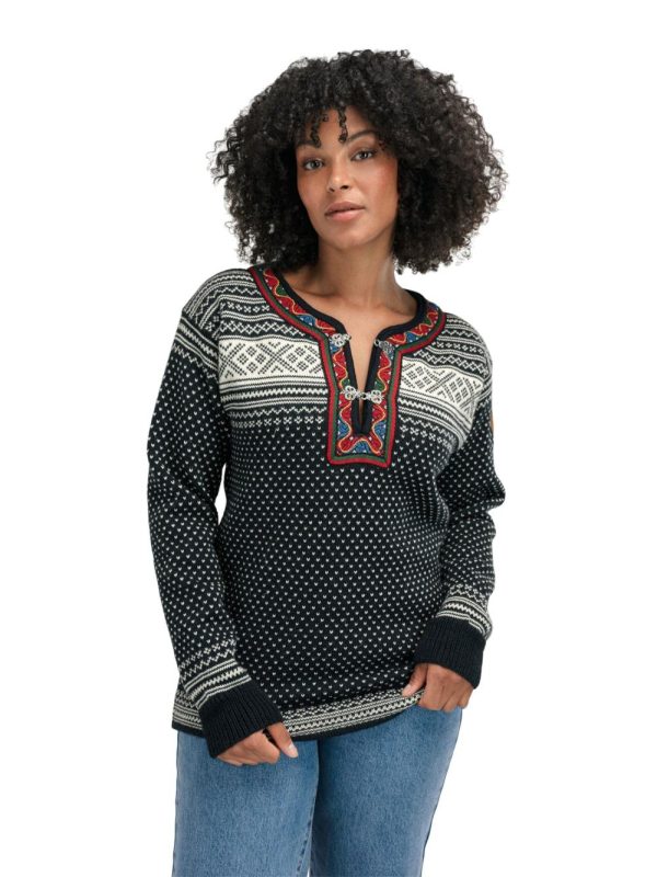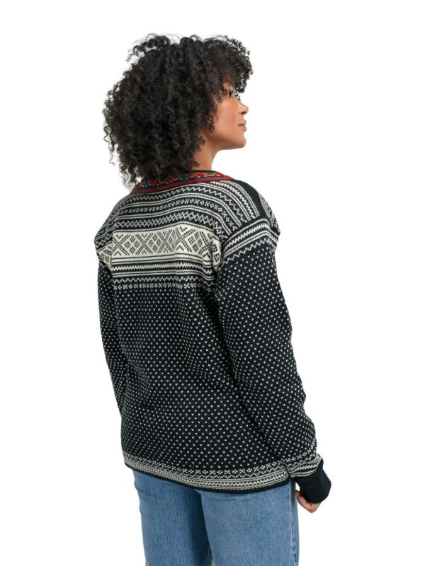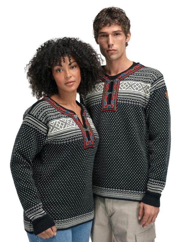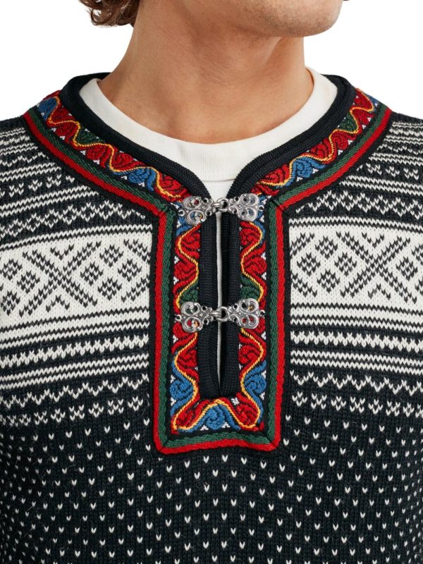 The Setesdal design is the most recognizable Norwegian pattern and has been knitted for generations, based on the original “Setesdal Lusekofte”. The small v-shaped dots are known as the lice pattern, while the crosses were believed to protect from evil spirits. Made with long-lasting Norwegian wool, Norwegian-made pewter clasps and embroidered band, identical to the original design.